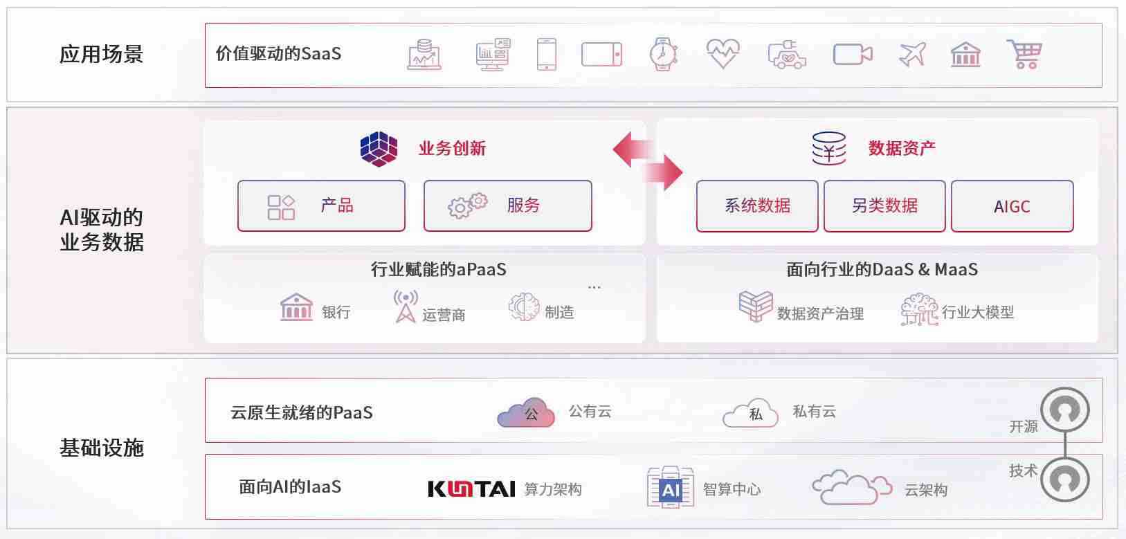 数字时代,,,,围绕企业数字化转型的关键要素,,尊龙z6数码开创性的提出数云融合战略和技术体系框架,,着力在云原生、、数字原生、、、AI原生和信创产业上架构产品和服务能力,,,为处在不同数字化转型阶段的快消零售、、汽车、、、、金融、、医疗、、、政企、、、教育、、、、运营商等行业客户提供泛在的敏捷IT能力和融合的数据驱动能力,,,,构建跨界融合创新的数字业务场景和新业务模式,,,,助力企业级客户建立面向未来的核心能力和竞争优势,,,全面推动社会的数字化、、、智能化转型升级。。。。